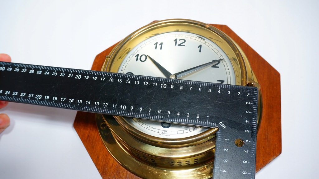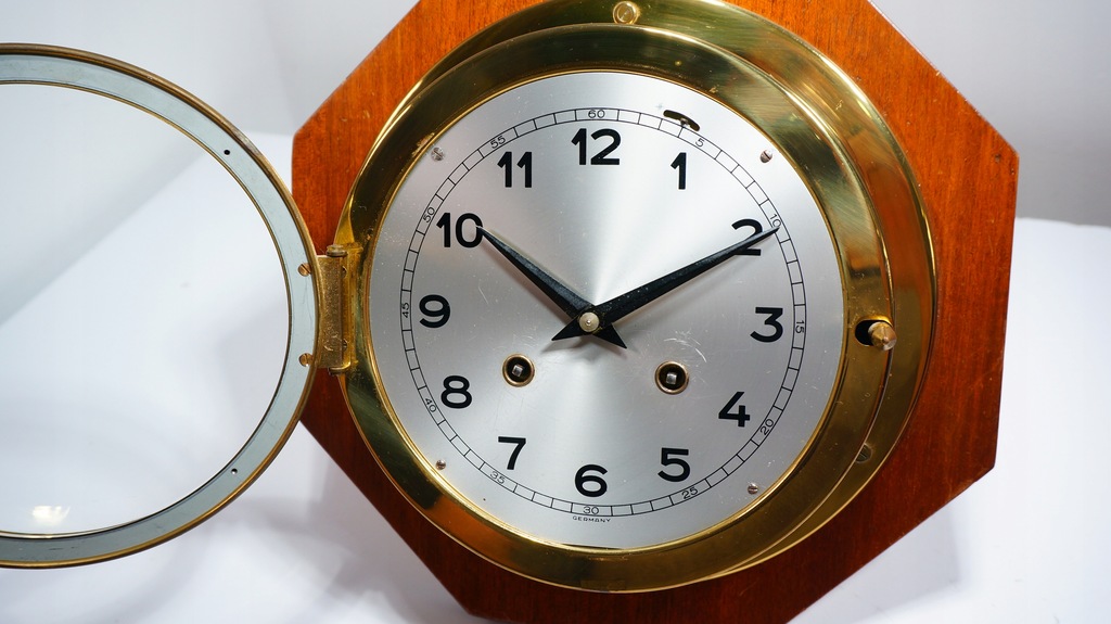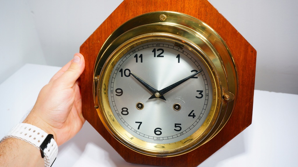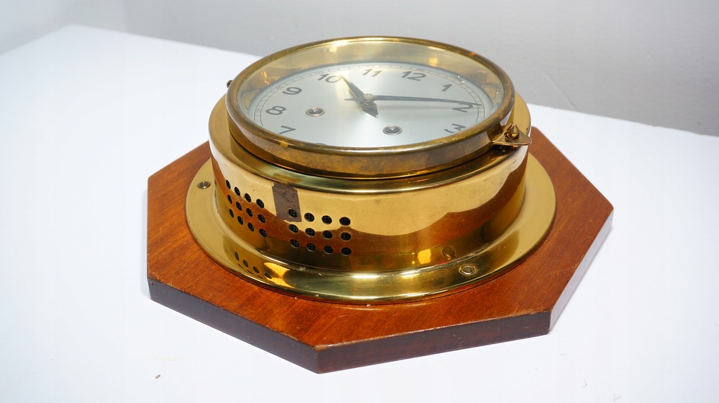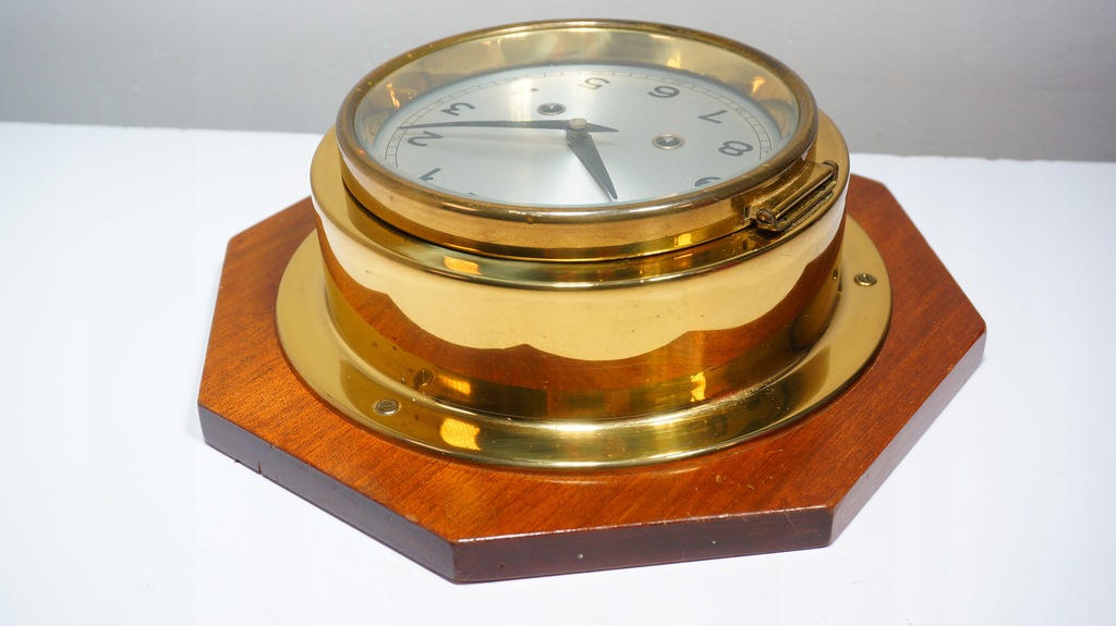 Klasyczny Nakręcany Zegar Okrętowy na drewnianej Podstawce
