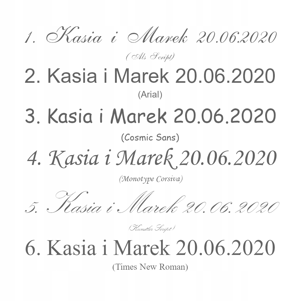 Bezpłatnie wykonujemy grawer tekstów, za pomocą jednej z przedstawionych w aukcji czcionek. Znaki muszą być obsługiwane przez polską klawiaturę.