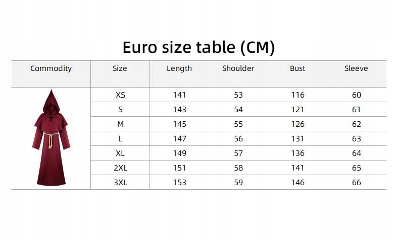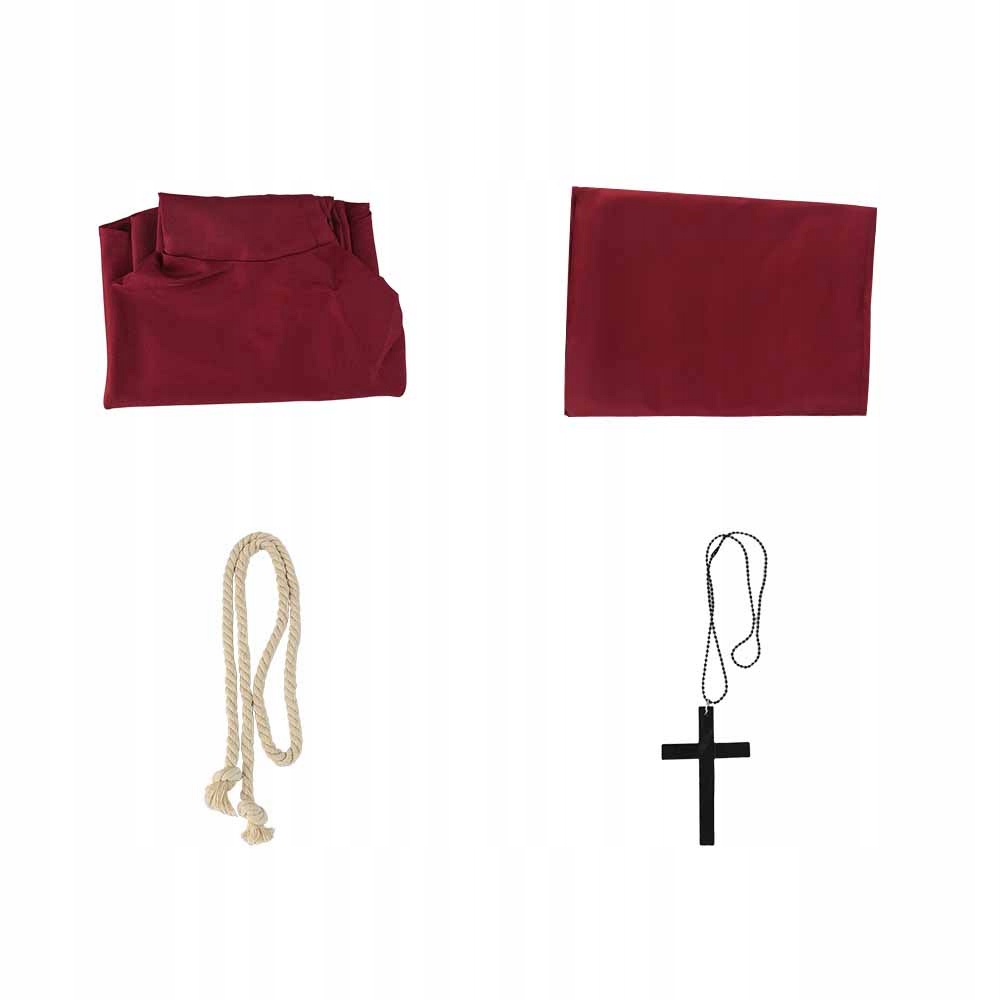 Otrzymasz szatę mnicha płaszcz krzyż pas sznurek, czyli klasyczny czteroczęściowy zestaw, dzięki któremu z łatwością uzyskasz wymarzony wygląd. Nie musisz kupować innych akcesoriów, już je dla Ciebie dopasowaliśmy, co jest dla Ciebie wygodne i niedrogie.