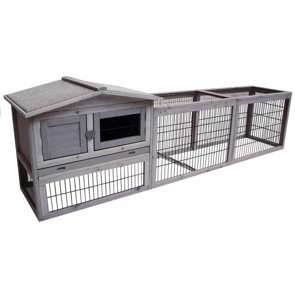 Klatka składa się z dwóch części: strefy sypialnej i bardzo dużego wybiegu. Twój królik będzie mógł w nocy odpoczywać w części sypialnej, a w ciągu dnia zejść po rampie na dół. Bardzo duży wybieg pozwala na korzystanie ze słońca, ruch i zabawę z właścicielem.