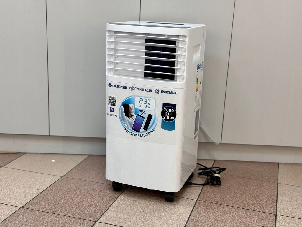 Przedmiotem sprzedaży jest przenośny klimatyzator TCL TAC-07CPB/RS 2000W WiFi w kolorze białym.