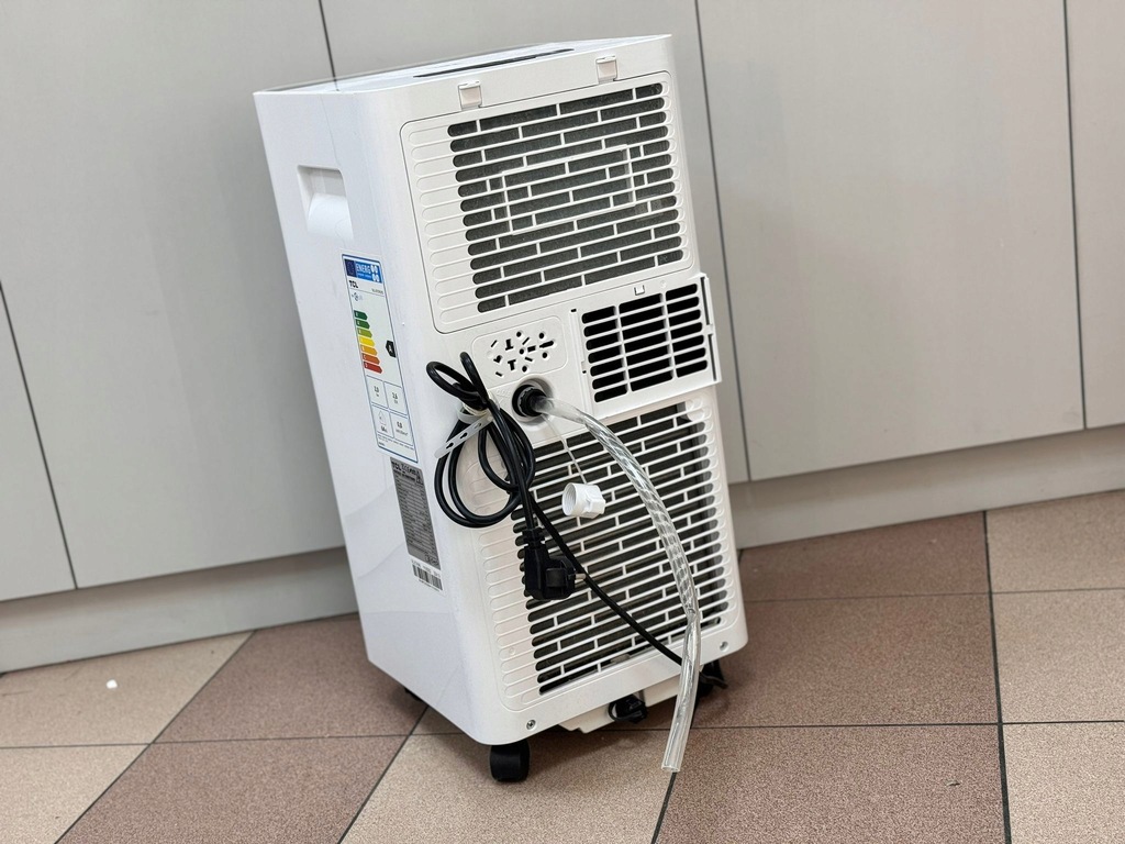 Przenośny klimatyzator powietrza TCL TAC-07CPB-RS to tzw. monoblok. Posiada rurę odprowadzającą ciepło i wilgoć na zewnątrz budynku, która może być wyprowadzona przez otwór w ścianie lub oknie. Wyprowadzenie rury na zewnątrz w taki sposób, aby przez otwarte okno nie dostawały się do środka masy nagrzanego powietrza, wymaga zastosowania specjalnej uszczelki. Klimatyzator przenośny to urządzenie mobilne, które w razie potrzeby można przenieść do innego pomieszczenia. Wystarczy tylko pamiętać, że trzeba wyprowadzić rurę na zewnątrz. Produkt ma uchwyty z obydwu stron ułatwiające podnoszenie urządzenia oraz wygodne kółka ułatwiające przemieszczanie.