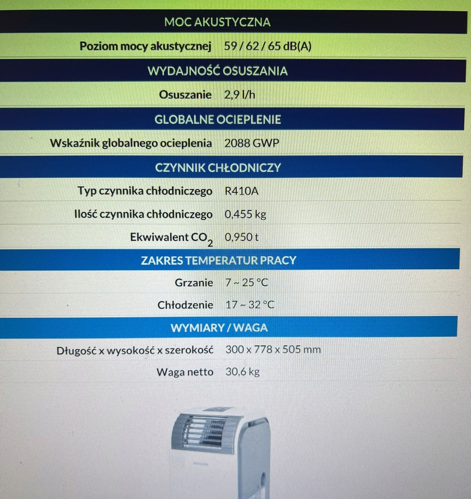 stan używany urządzenie wykonuje wszystkie funkcje ,należy uzupełnić czynnik chłodniczy R410A , koszt uzupełnienia do 100 zł