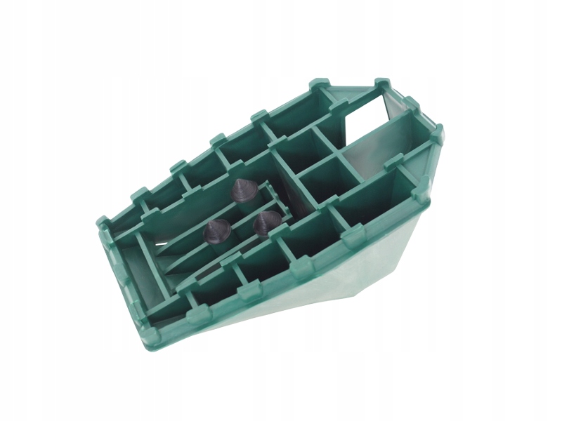 Blokada zrobiona jest z mocnego tworzywa ABS odpornego na działanie warunków atmosferycznych. W klinie znajdują się 3 szpikulce, które wbijają się w podłoże zapobiegając osuwaniu się pojazdu.
