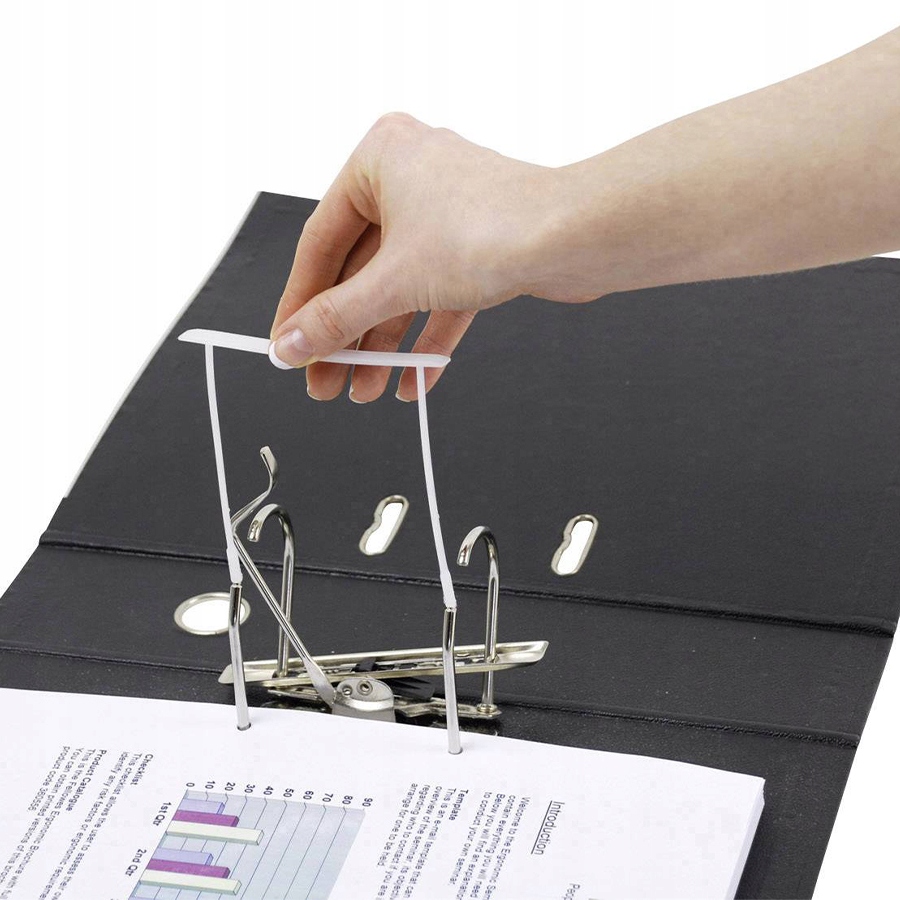 - Ergonomiczna konstrukcja. Dwuczęściowy, plastikowy klips archiwizacyjny umożliwiający bezpośrednie przeniesienie dokumentów.