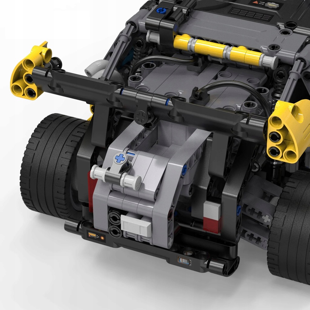 Złożony pojazd ma otwierane drzwi i bagażnik oraz maskę. Wyposażony został w 4 gumowe koła, które umożliwią poruszanie się po różnych powierzchniach. Ma czarną karoserię z szarymi, żółtymi i niebieskimi elementami.