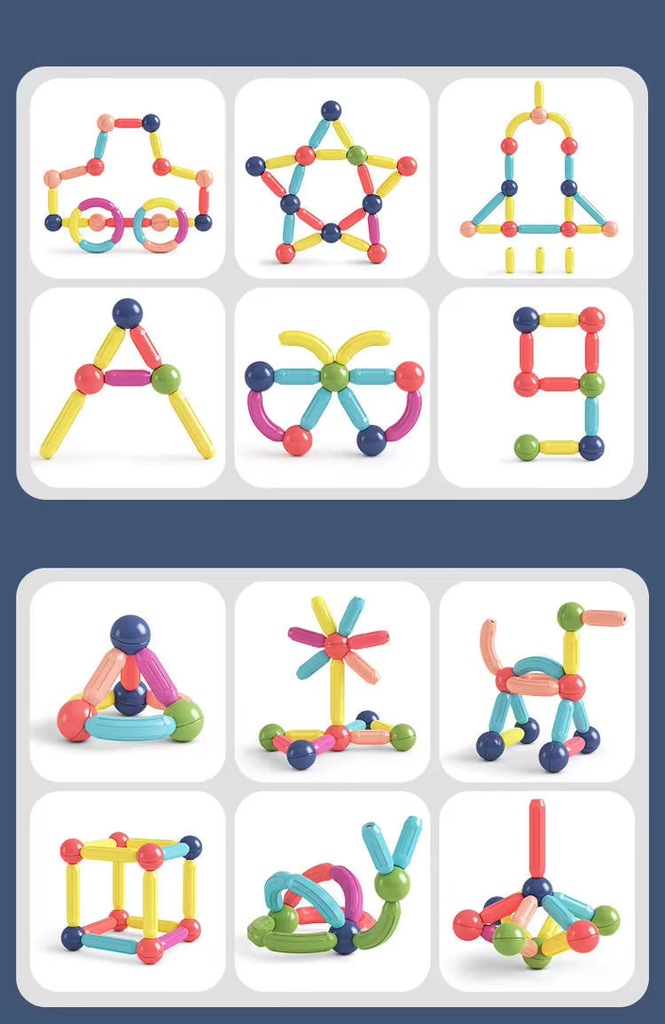 ⭐KLOCKI MAGNETYCZNE 120 ELEMENTÓW SŁUPKI/PATYCZKI