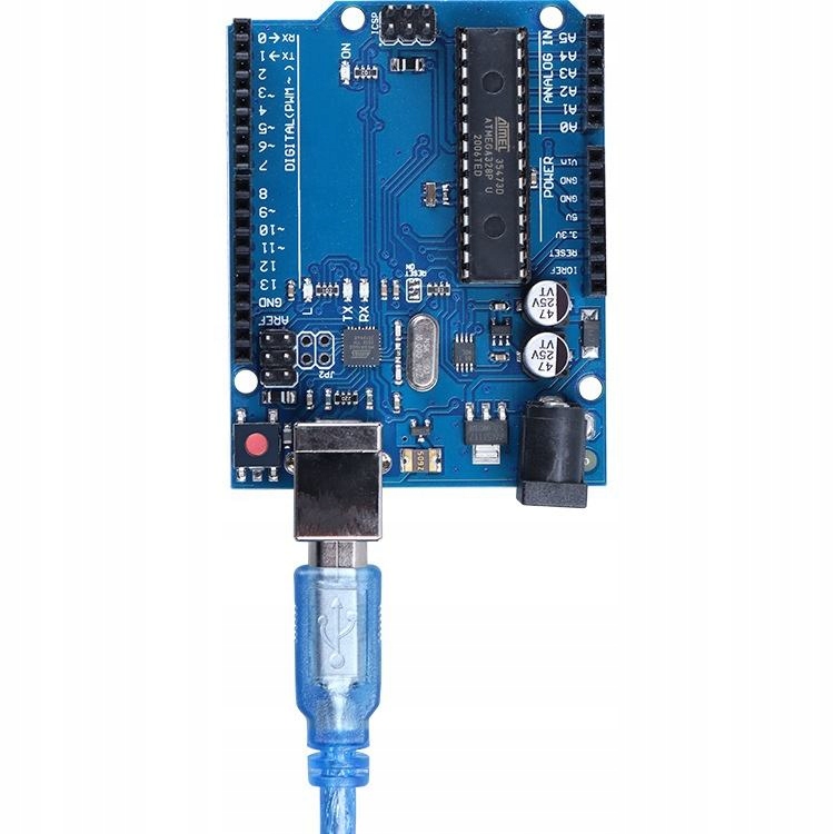 Klon Uno R3 to najbardziej popularny minikomputer do nauki elektroniki i programowania. Wyposażony w układ ATmega328P (czyli mózg całego układu) z taktowaniem 16MHz. Płytka może być wykorzystywana do wielu projektów.