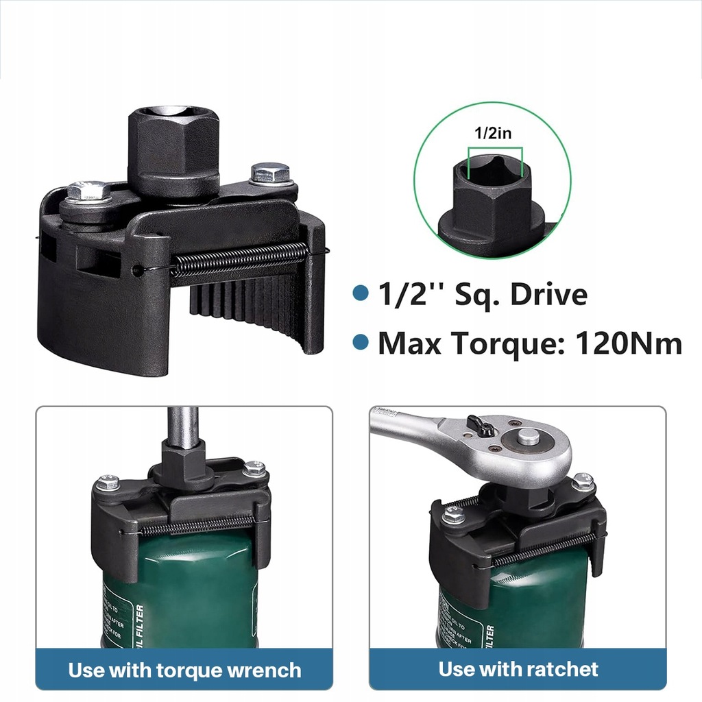 Umożliwia demontaż filtra oleju w samochodach osobowych/ciężarowych itp. bez uszkadzania filtra.