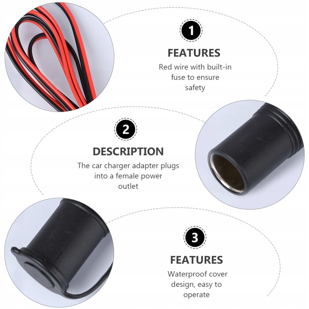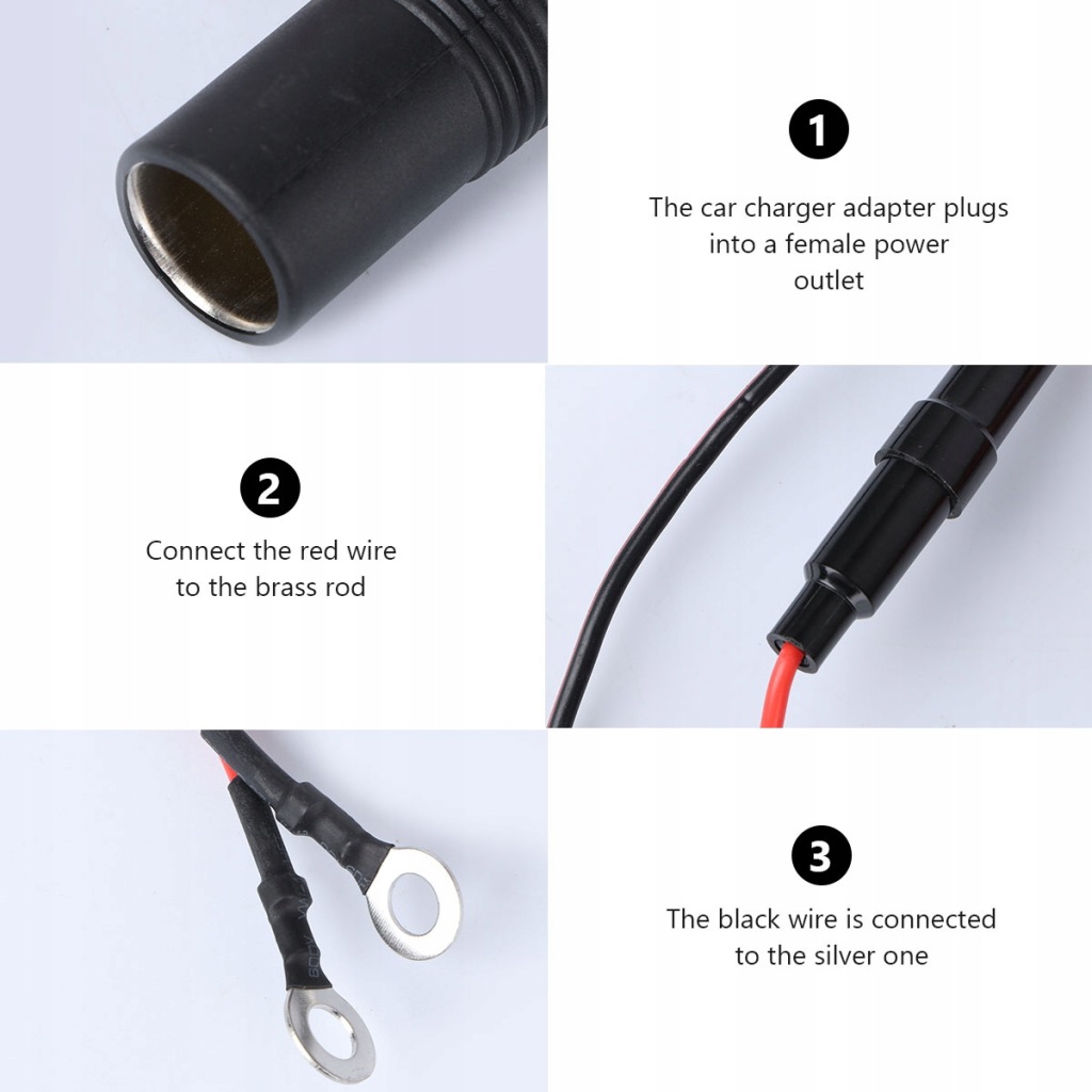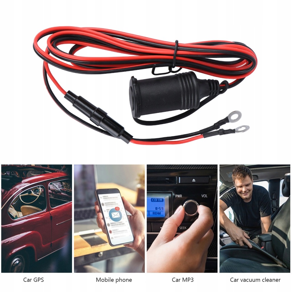 1 * CS-008 Wodoodporny 12 V Samochód Motocykl Łódź Kobieta Gniazdo Zapalniczki Wtyczka Zasilania z 180 cm Bezpiecznik Drutu (Czarny)