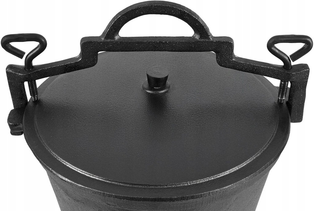 ⭐️ Solidna żeliwna konstrukcja⭐️ Pojemność 10 litrów⭐️ Pokrywa z uchwytem i mechanizmem docisku