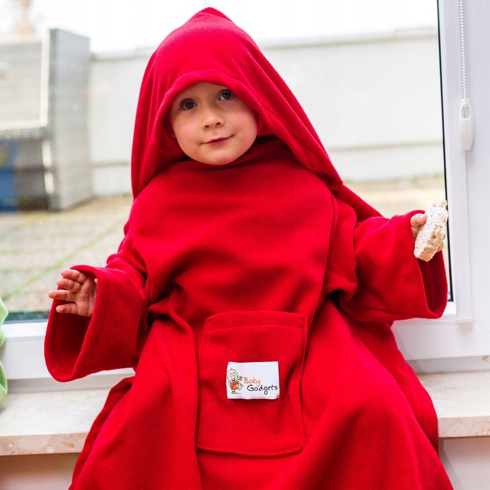 Kocyk z polaru z kapturkiem, rękawami i otworem na głowę.