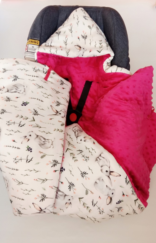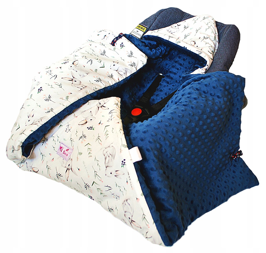 Kocyk dobrze otula dziecko po samą szyję i pozostaje na swoim miejscu dzięki wycięciom na szelki, dodatkowo posiada kapturek na główkę niemowlaka zapewniający komfort i ciepło. Łatwy w użyciu, bez problemu zakryjemy, odkryjemy i wyjmiemy dziecko nie przeszkadzając mu w śnie. Kocyk w kształcie rombu.