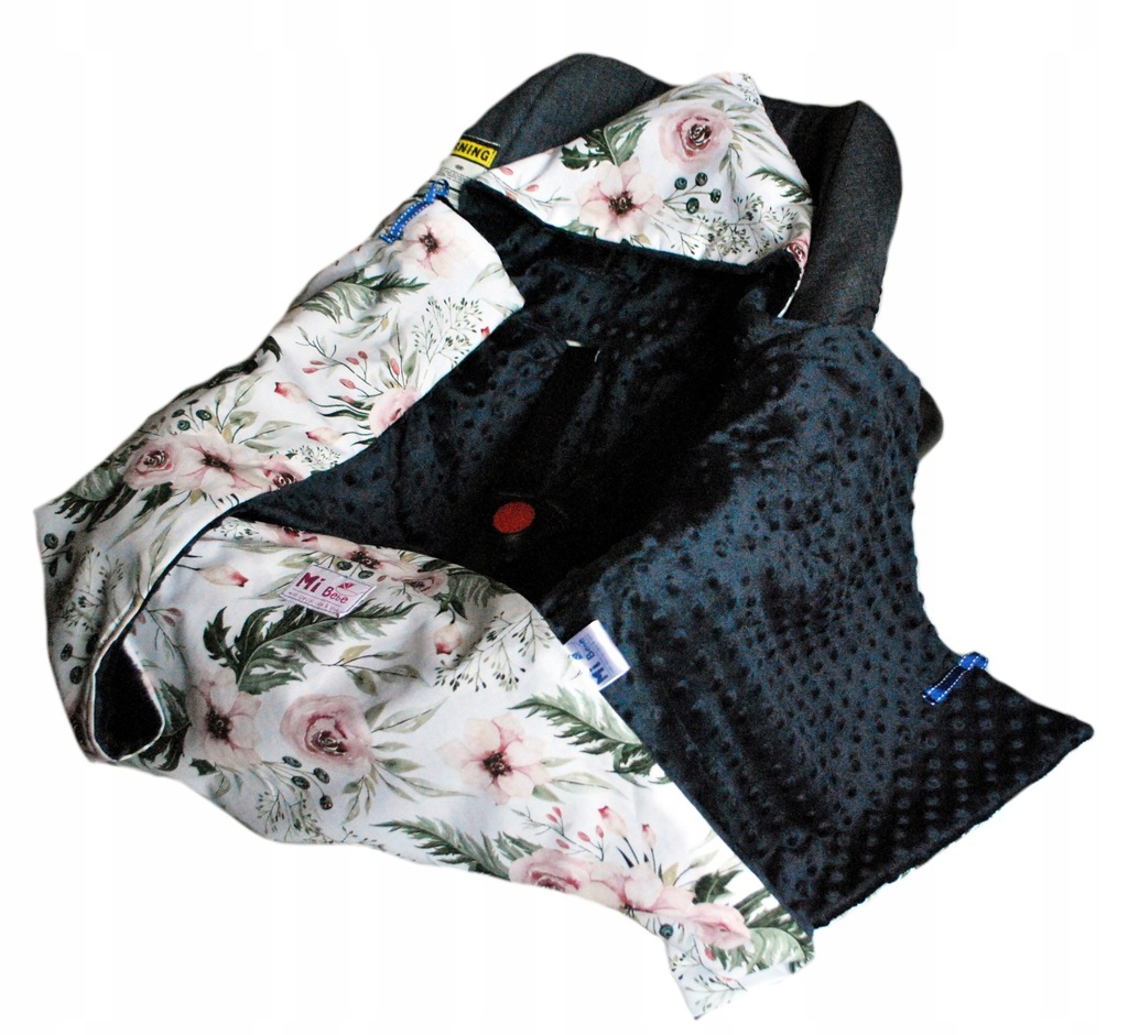 Do każdego koca wszyte tasiemki służące do przyczepienia smoczka. Kocyk przeznaczony do fotelika samochodowego 0-13 kg. Kocyk dostosowany do 3 lub 5-cio punktowych pasów bezpieczeństwa.