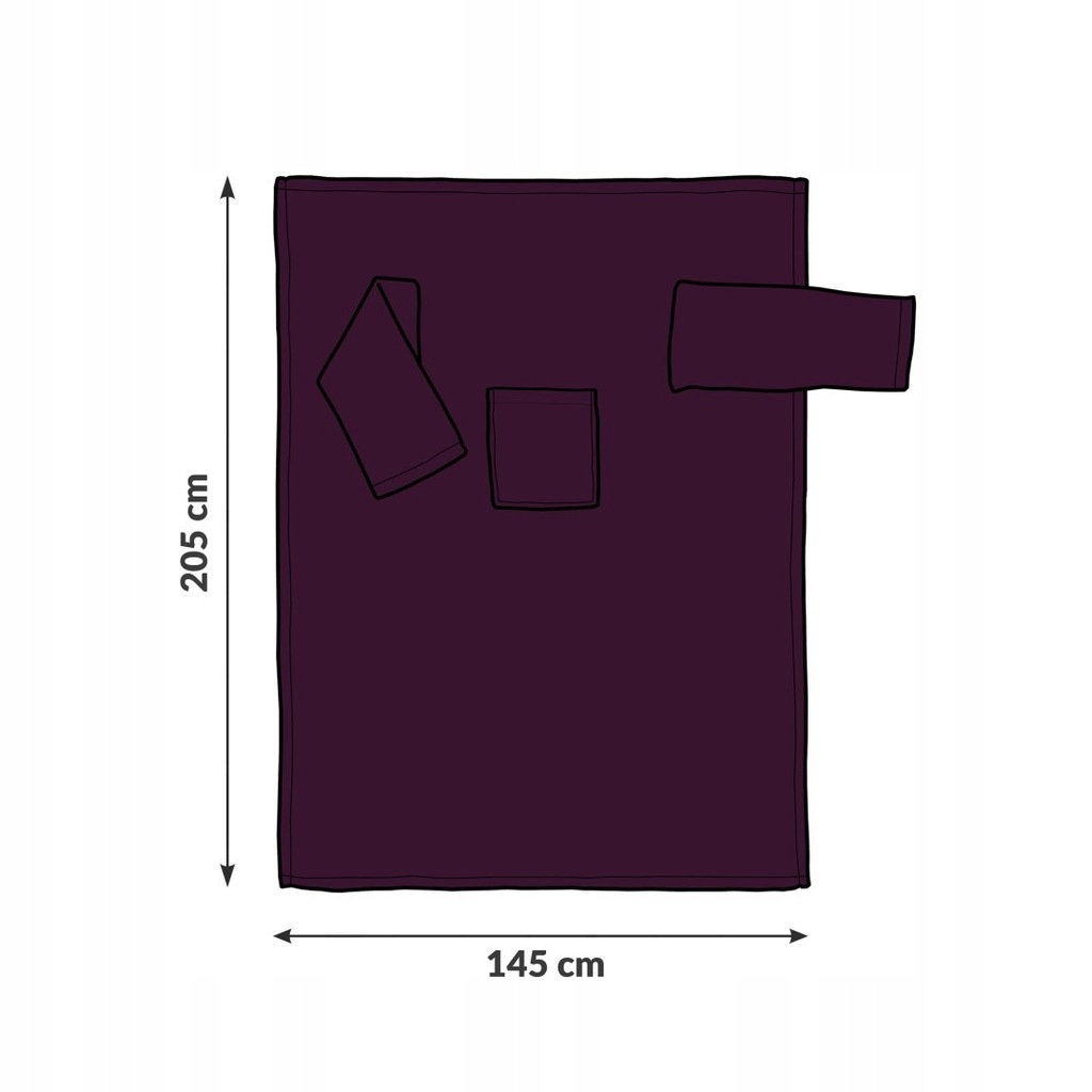 Materiał: polar (100% poliester). Wymiary: 205 cm (długość), 145 cm (szerokość), rozmiar uniwersalny. Gramatura: 280 g/m2. Bardzo mocne szwy. Można prać w temperaturze 30 stopni. Praktyczne opakowanie z rączką, które ułatwia przechowywanie produktu.