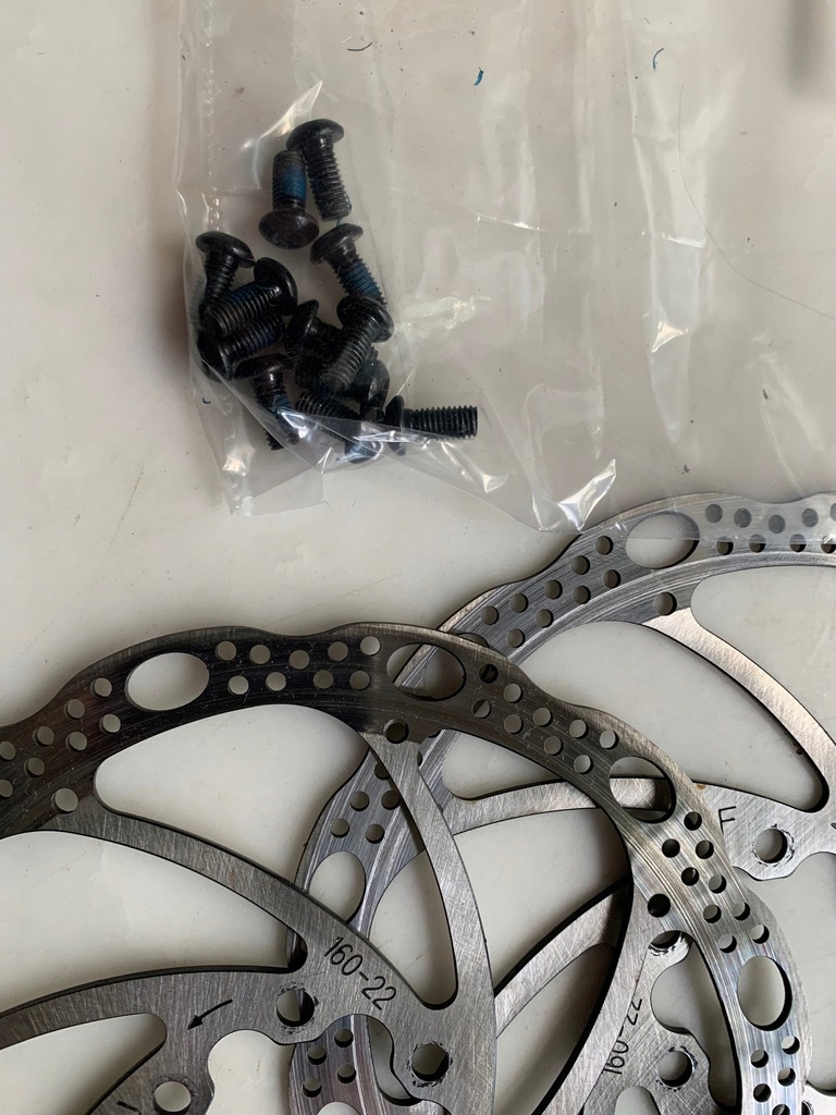 Dodatkowo mogę dodać w cenie zestawu używane tarcze hamulcowe Tektro 160-22 z mocowaniem 6-bolt.