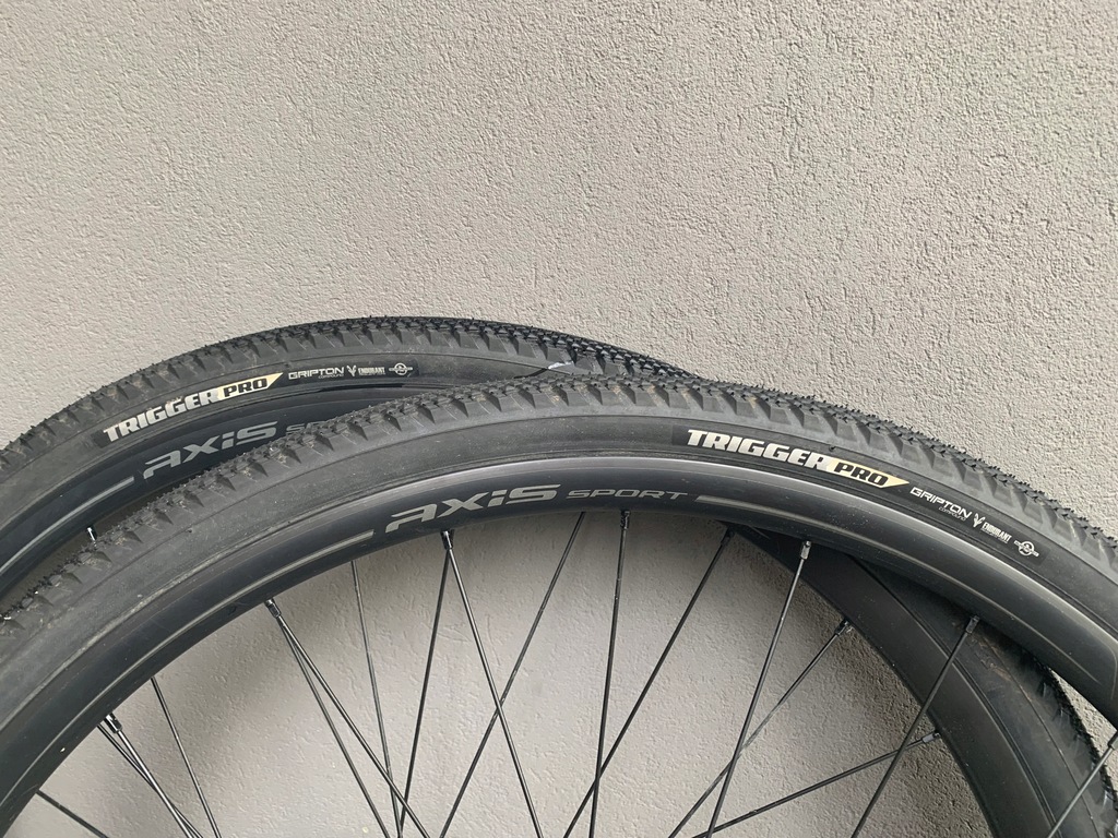 Sprzedaję komplet kół AXIS SPORT 700-622 wraz z oponami SPECIALIZED TRIGGER PRO 38-622, kasetą 10s. i tarczami Tektro 160mm.