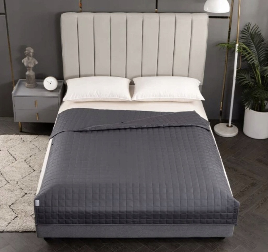 Koc obciążeniowy ma pikowania, co zapewnia równomierne rozłożenie na ciele.