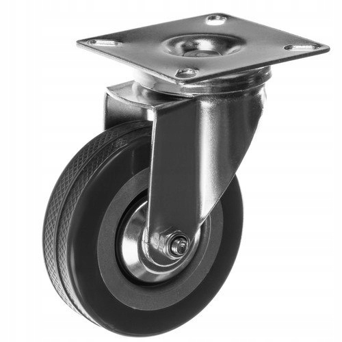 - SPECYFIKACJA - materiał: guma, stal nierdzewna; kolor: srebrny, szary; maksymalne obciążenie: 220 kg; wielkość płyty instalacyjnej: 6,5 x 6,5 cm; rozstaw otworów montażowych: 4,8 cm; średnica koła: 7 cm; szerokość koła: 2 cm; wysokość całkowita: 10 cm; waga: 1,402 kg; waga w opakowaniu: 1,467 kg.