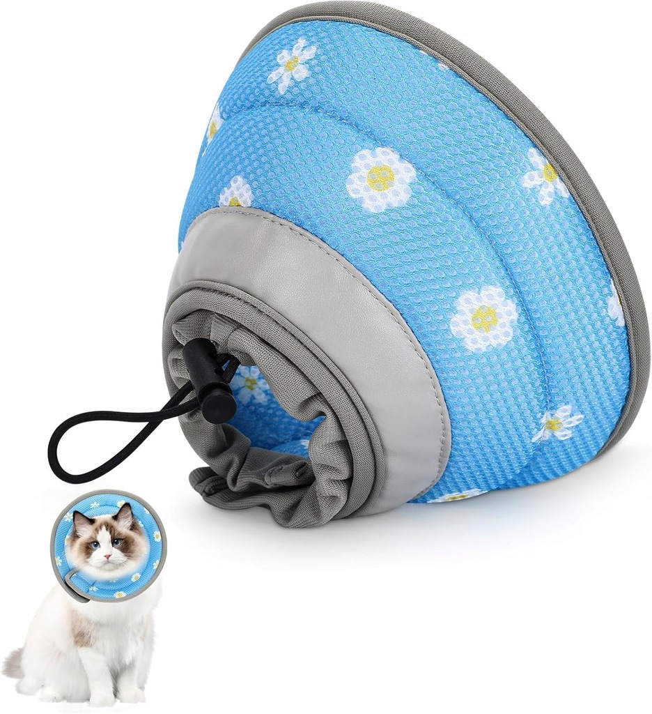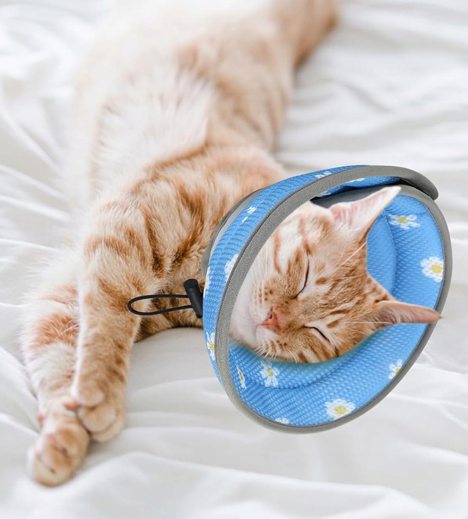 ✅ Nie Ogranicza Widoczności i Swobody: Miękka konstrukcja kołnierza nie blokuje całkowicie pola widzenia kota, co pozwala mu na swobodne poruszanie się, jedzenie, picie i eksplorowanie otoczenia. To minimalizuje stres i frustrację zwierzęcia.
