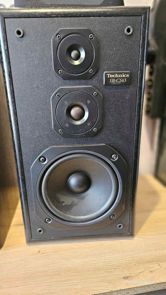 Kolumny głośnikowe Technics SB-CS65 widoczne na zdjęciach. Kolumny sprawne, wizualnie jak na swoje lata w dobrym stanie, jednak z boku w drewnie maja dziury po wkrętach, prawdopodobnie wisiały gdzieś na ścianie.