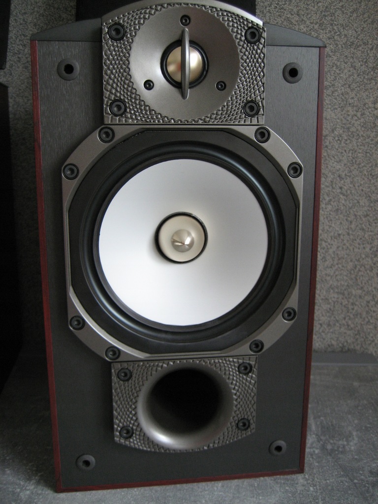 Uwaga: kolumny są używane, noszą na obudowie drobne ślady użytkowania (mikroryski – praktycznie niezauważalne). Spody kolumn są porysowane i mają w obudowie otwory po mocowaniach do standów – pokazałem to na jednym ze zdjęć. Głośniki w stanie idealnym.