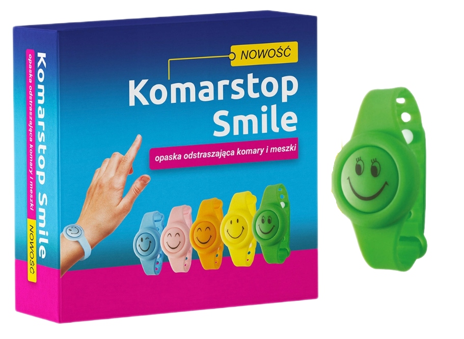 Opaska Komarstop Smile jest zarejestrowanym produktem biobójczym - numer pozwolenia na obrót: 8443/21