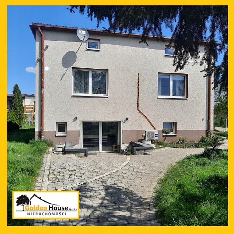 Oferowana do sprzedaży nieruchomość jest idealną propozycją do prowadzenia rodzinnego biznesu. W skład nieruchomości wchodzi działka o powierzchni 4500 m2 , szerokości ponad 30 metrów zabudowana domem mieszkalnym, wolnostojącym garażem z bezpośrednim wjazdem z drogi publicznej i kompleksem gospodarczym składającym się z budynku biurowo - socjalnego i czterema halami . Dom wzniesiony w latach osiemdziesiątych ubiegłego wieku, po generalnym remoncie wykonanym w 2020 roku. Budynek wzniesiony z cegły, parterowy z wysokim przyziemiem i niskim, widnym poddaszem. Powierzchnia całkowita domu wynosi 240 m, powierzchnia użytkowa 120 m2. Parter domu to wygodna część mieszkalna składająca się z salonu, kuchni i holu w układzie otwartym, dwóch wygodnych sypialni i widnej łazienki. Dodatkowo duży taras oraz przedpokój z prostymi schodami prowadzącymi na poddasze. Wnętrza w nowoczesnej i gustownej aranżacji, elegancko umeblowane. W salonie zainstalowana klimatyzacja z funkcją grzania. Osobne wejście z boku domu prowadzi do przyziemia zaadaptowanego na cele mieszkalne. Odnajdujemy tutaj dwa pokoje, kuchnię, hol, łazienkę z prysznicem i toaletą, kotłownię i pomieszczenie gospodarcze. Podobnie , jak parter wnętrza estetycznie wykończone. Przed budynkiem część rekreacyjna z dużą ilością zieleni, wiatą z wybrukowanym podłożem i przejściem do domu styczną z murowanym garażem. Ogrzewanie domu gazowe, kanalizacja odpływowa do szamba. Budynek wraz z częścią rekreacyjną oddzielony od reszty działki dodatkowym ogrodzeniem. W budynku wygodnie mogą zamieszkać: rodzina z dziećmi na parterze i seniorzy w zaadaptowanym na mieszkanie przyziemiu. Pozostała część parceli przeznaczona została na prowadzenie działalności gospodarczej. W 2020 roku wzniesiony został kompleks : dwukondygnacyjny budynek z pomieszczeniami biurowymi, łazienką, zapleczem socjalnym: kuchnią, szatnią, prysznicami i toaletą dla pracowników oraz cztery hale garażowe w tym jedna z kanałem. Hale wysokie na 4,5 m, połączone ze sobą bezpośrednimi przejściami, do dowolnego wykorzystania: warsztaty, magazyny, produkcja itp. Ta część działki wyasfaltowana.