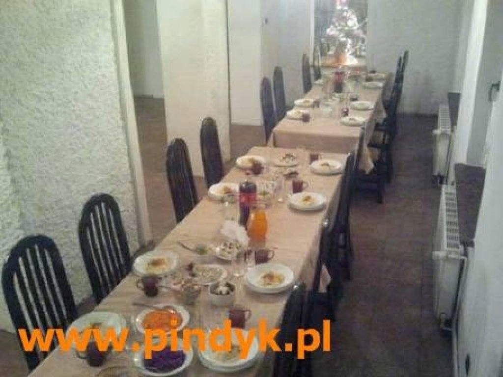 Na parterze znajduje się sala restauracyjna, sala z barem, zaplecze kuchenne, WC dwa pokoje, sala kominkowa, sala z bilardem oraz holl.