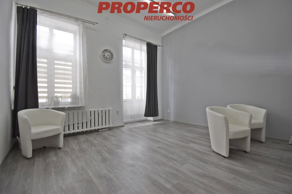For rent: commercial unit with a usable area of 23.14 m² and a total area of 29.08 m², located on the second floor of a building in the center of Kielce. Intended use: office or service.