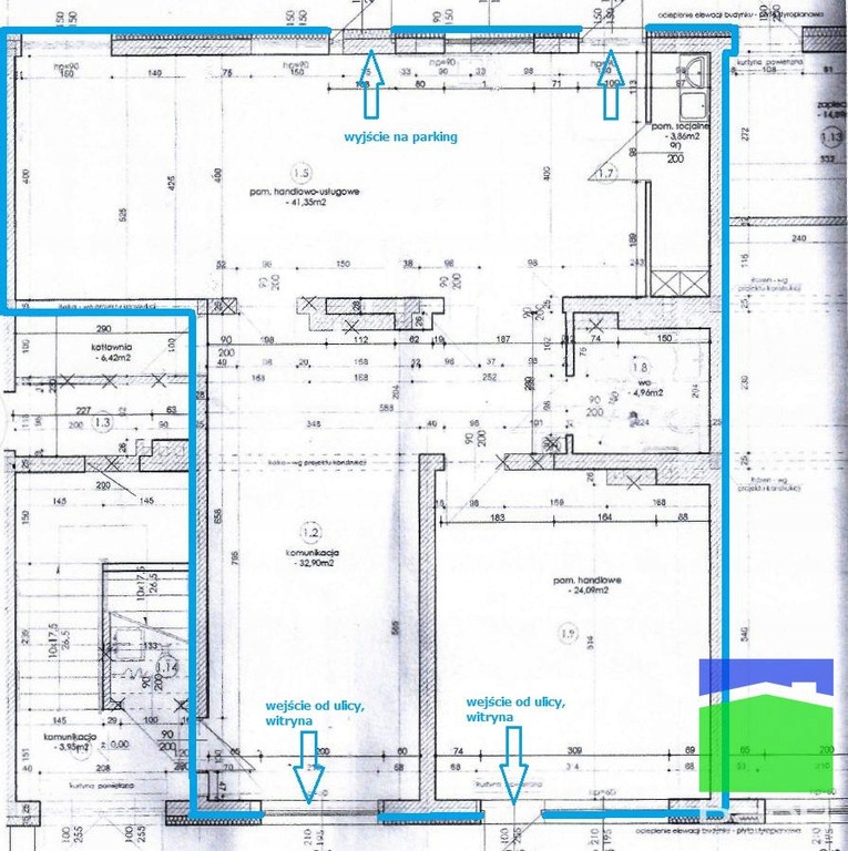 Dwa niezależne wejścia bezpośrednio z ulicy, duże witryny.