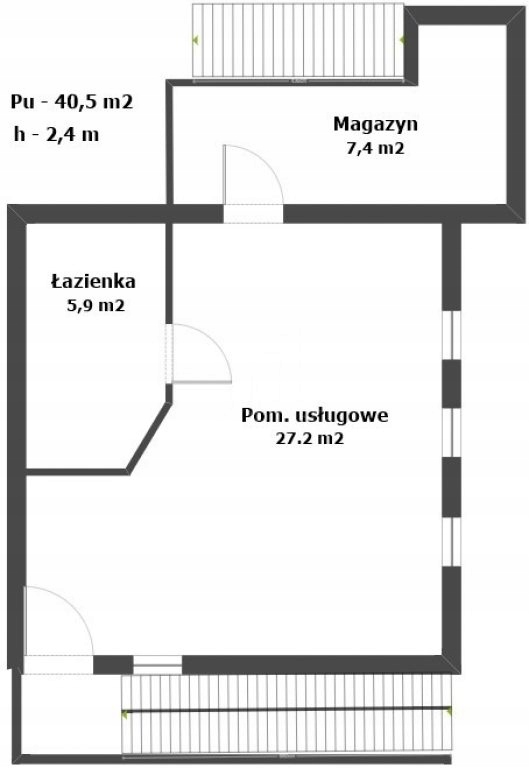 Jego powierzchnia wynosi 40,5 m2, na co składa się: