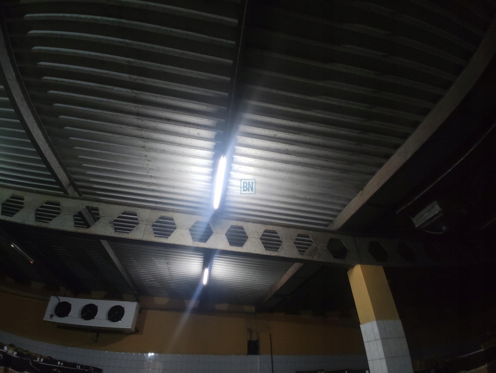 Konstrukcja żelbetowa wypełniona murem. Dach z elementów żelbetonowych i stalowych dźwigarów.