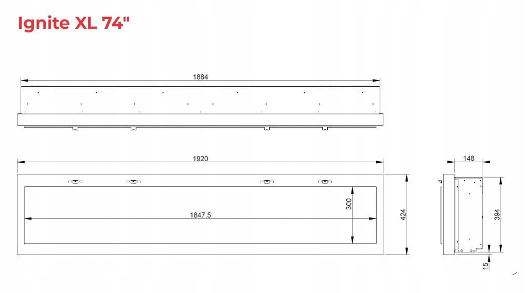 - Model kominka elektrycznego: IGNITE XL 74" ECO LED