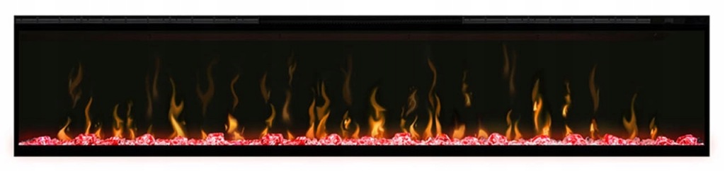 Dimplex Ignite XL 74" ECO LED to panoramiczny kominek ścienny wyposażony w efekt świetlny Optiflame LED z opatentowanym systemem Multi-Fire XD® naśladującym bardzo realistycznie prawdziwe płomienie. Ogień w technologii Optiflame® to uspokajające płomienie migoczące delikatnie nad paleniskiem. Palenisko z akrylowymi kostkami lodu, dodatkowo wzbogacone efektem mieniących się kolorowych świateł LED sprawia, że światło kominka wygląda nadzwyczaj efektownie. Kominek wyróżnia się nowoczesnym wzornictwem, montaż ułatwia obudowa o głębokości zaledwie 15 cm.