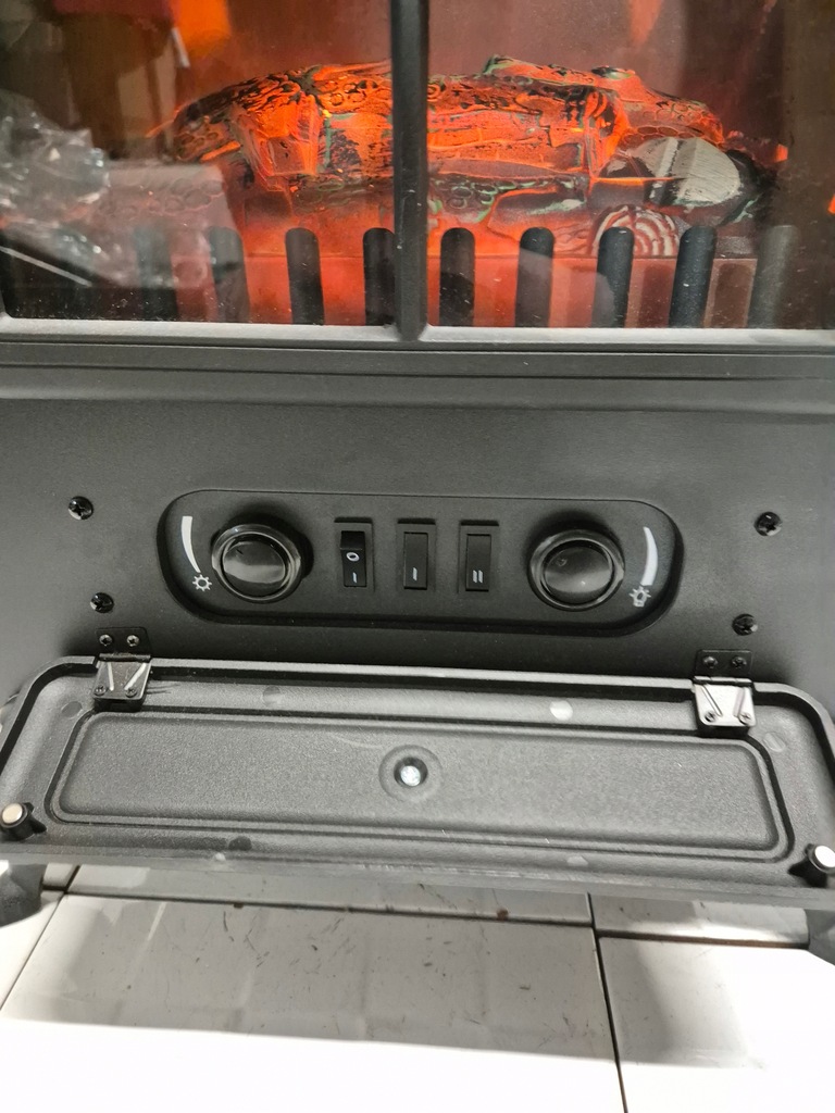 Ten elektryczny kominek jest wyposażony w kominek, który natychmiast dodaje do pokoju zachęcający, rozgrzewający blask. Ten ogień jest obsługiwany ręcznie, a elementy sterujące funkcjami znajdują się na urządzeniu.