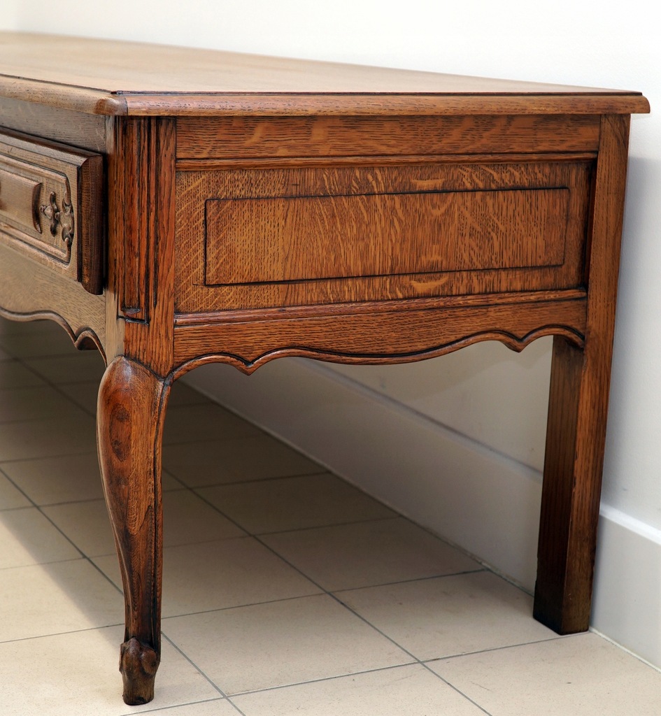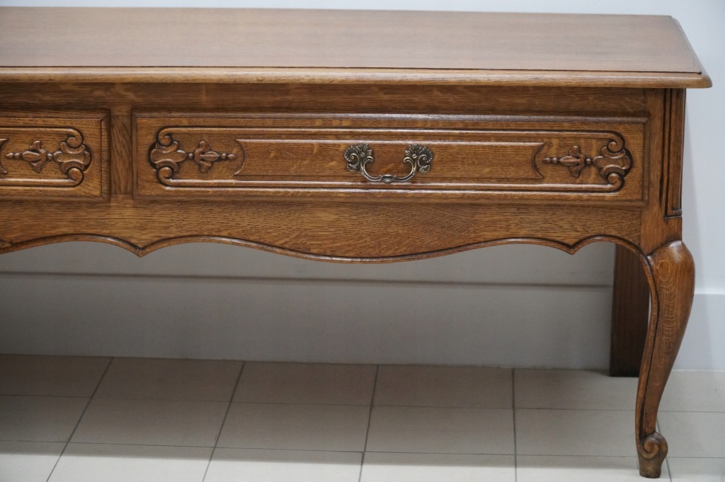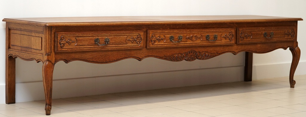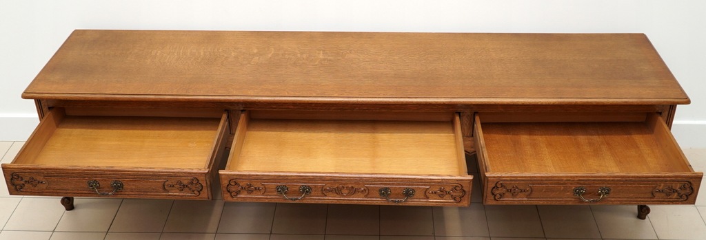 - DŁUGA DĘBOWA KOMODA LUDWIKOWSKA Z SZUFLADAMI, h67,5x250x58cm
