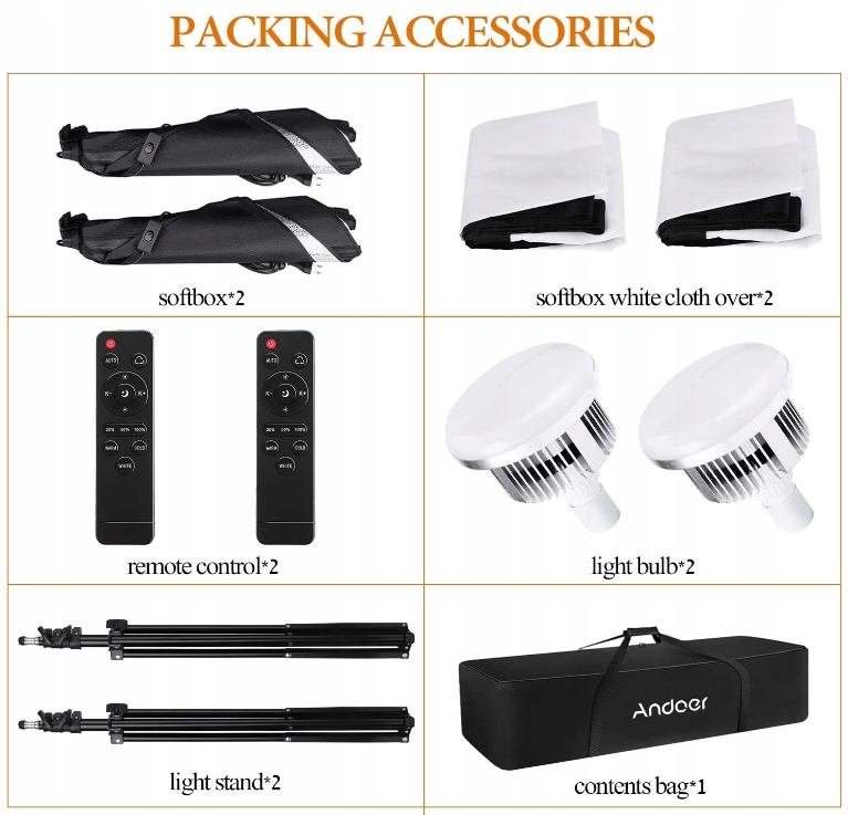 Andoer Studio Photography Light kit Softbox Lighting Set z 85W 2800K-5700K Bi-Color Temperature LED Light * 2 + 50x70cm Softbox * 2 + 2M lekki statyw * 2 + pilot zdalnego sterowania * 2 + torba transportowa * 1