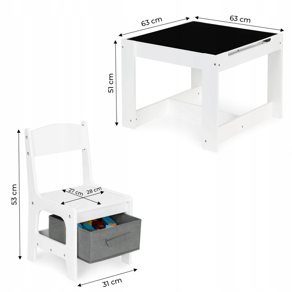 Uroczy komplet mebli dla dzieci, który składa się z pięknego stołu i dwóch uroczych krzesełek. Ten zestaw jest idealnym miejscem do nauki, zabawy i twórczego rozwoju dla maluchów.