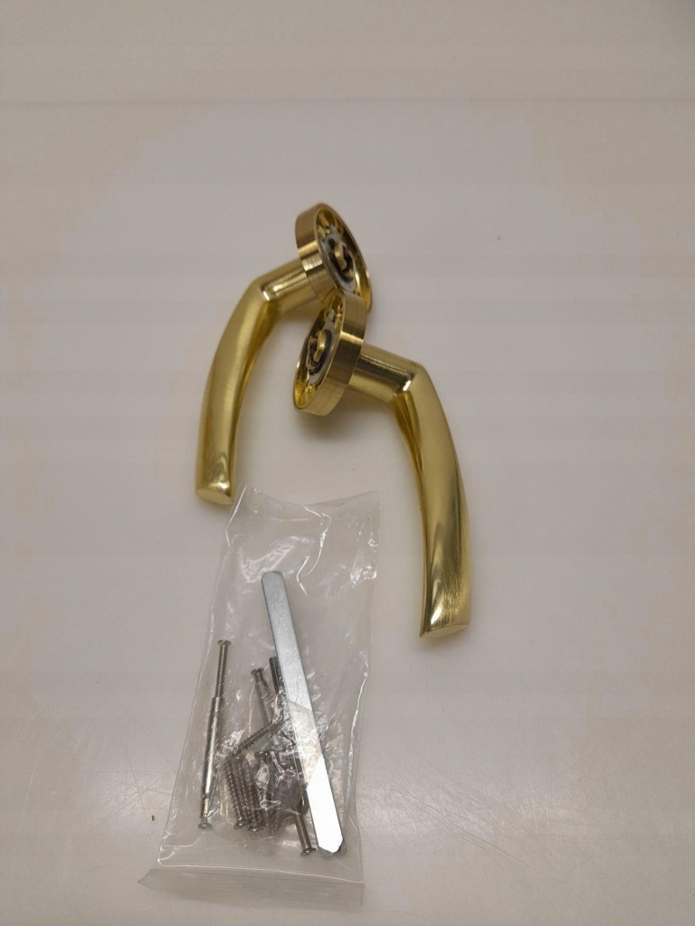 Komplet klamek do drzwi wewnętrznych, komplet z rozetą D.50 mm, aluminium, kolor złoty