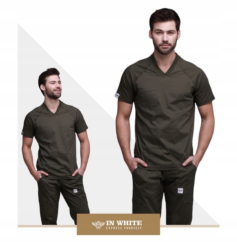 KOMPLET MEDYCZNY MĘSKI KHAKI ROZMIAR 5XL KOSZULA SPODNIE MEDYCZNE