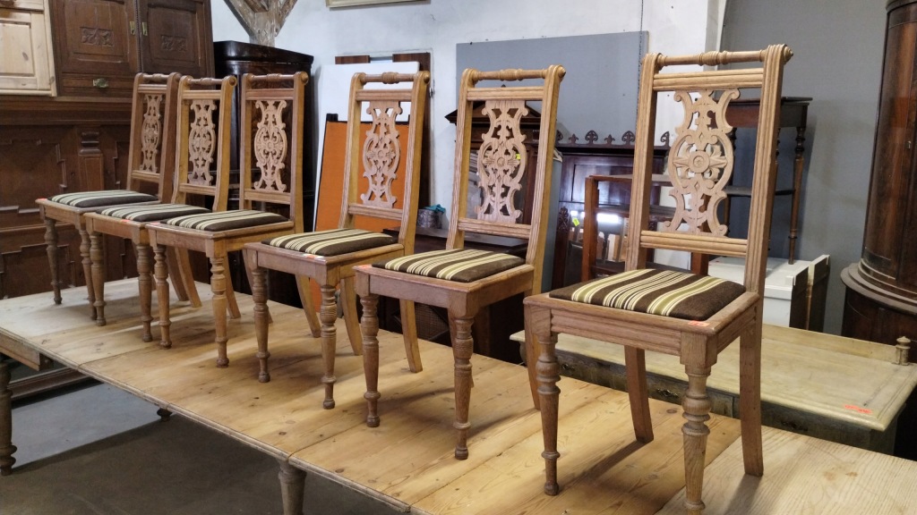 Komplet sześciu dębowych krzeseł eklektycznych XIXw. (15207811782)