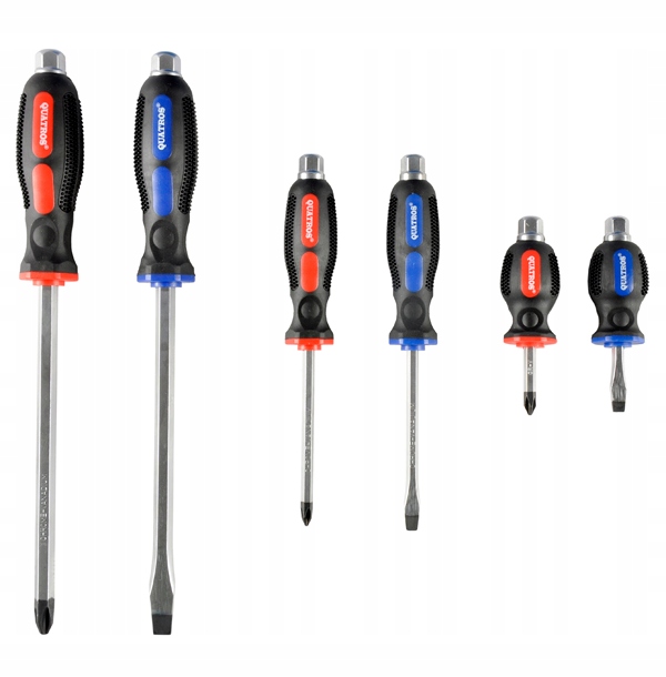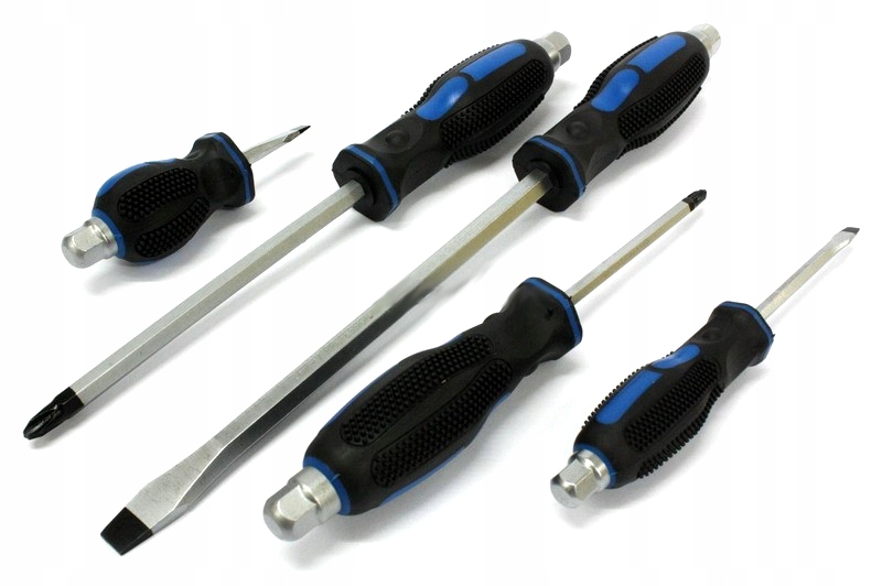 Zestaw wkrętaków wykonanych z wysokiej jakości materiałów. Charakteryzują się wytrzymałością, trwałością, niezawodnością oraz ergonomiczną konstrukcją rękojeści zapobiegającej ślizganiu się w dłoni. Wkrętaki znajdują zastosowanie zarówno w motoryzacji, jak i w użytku osobistym.