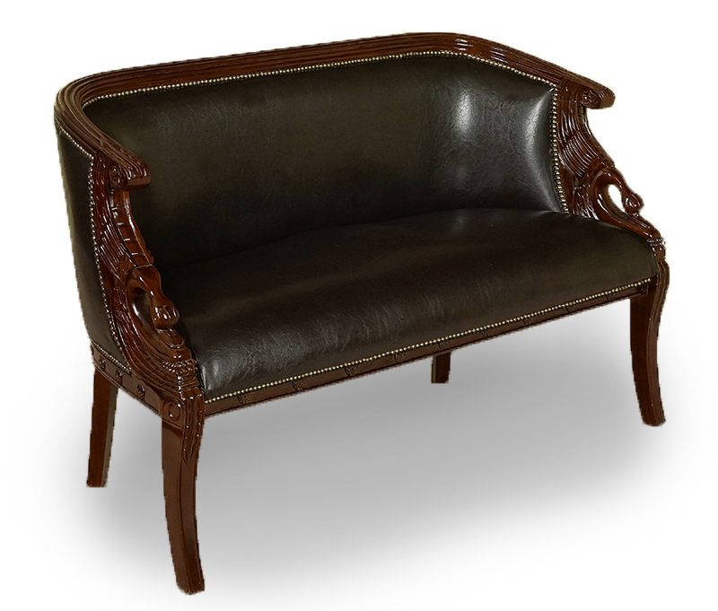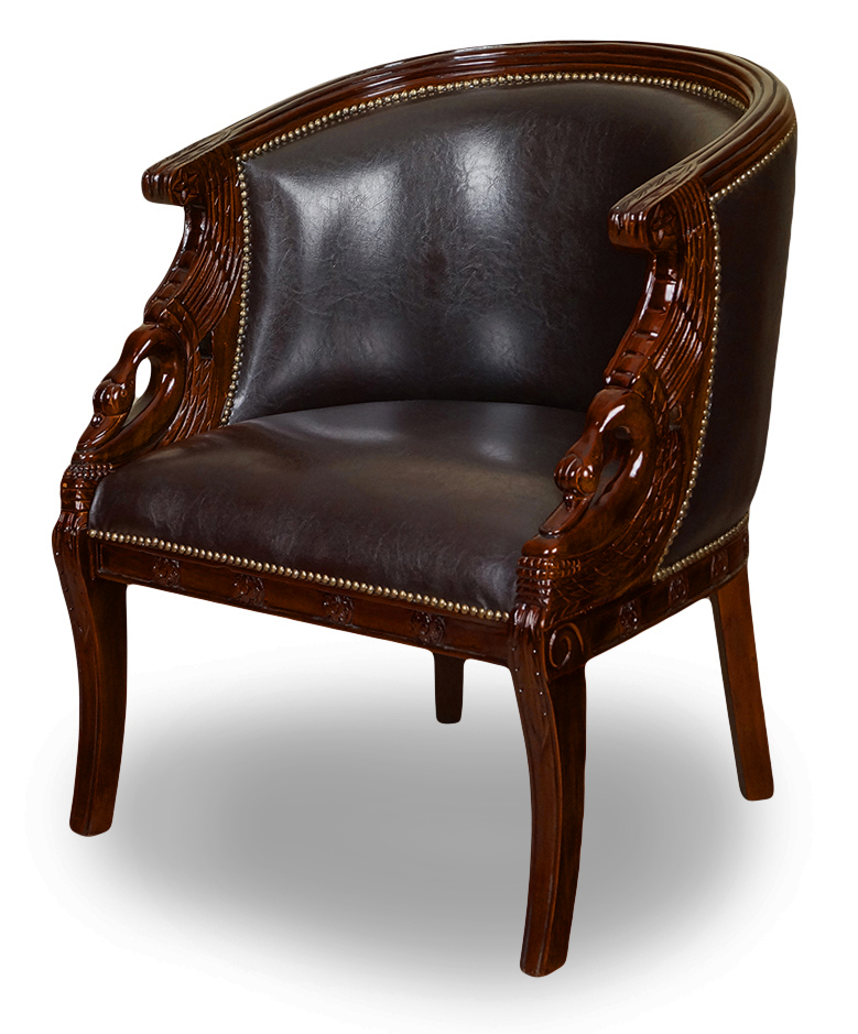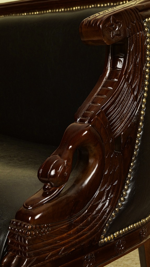 Przedmiotem aukcji jest komplet wypoczynkowy (sofa + 2 fotele) w stylu empire z motywem łabędzia.
