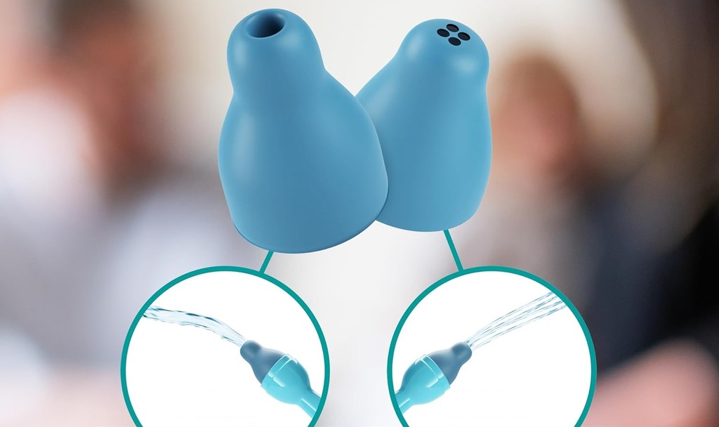 Irygator do płukania zatok, wyposażony w wygodny, jednodotykowy przycisk włączania i wyłączania, zapewnia łatwą kontrolę przepływu oraz wysoką efektywność oczyszczania nosa.