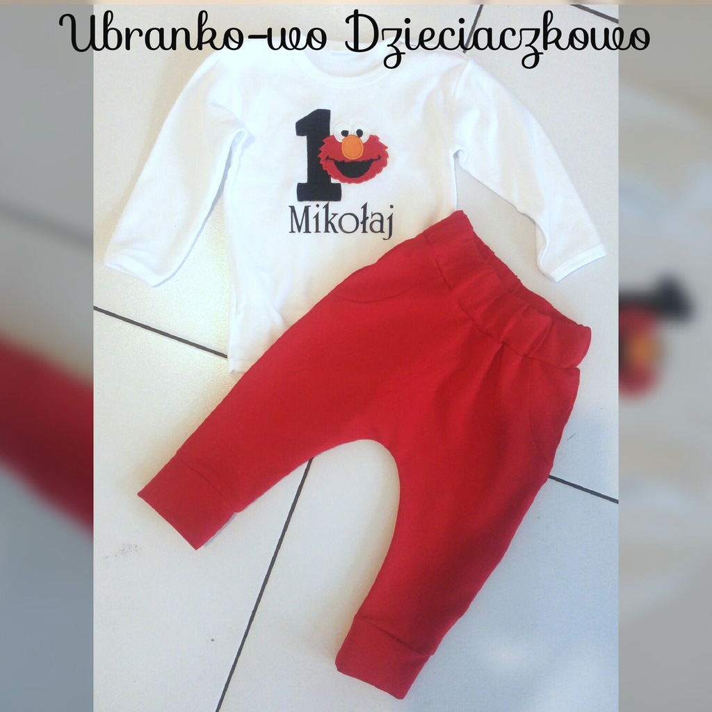 Rozmiary od 62 do 92 cm. Dla chłopca.Komplety urodzinowe roczek lub 2 lub 3 lub 4 itd lata:) Body wysokiej jakości bawełna. Prosze pytać o kolory. Dostępne róże 3 rodzaje.mieta, ciemny.szary.czerwony.czarny.żółty. Napis moze byc dowolny imie lub cos innego:) ulica sezamkowa trzy potwory do wyboru:)