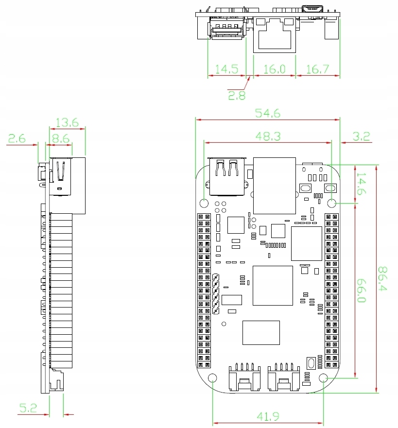 - Procesor: AM3358 ARM® Cortex-A8 1 GHz; 2 jednostki programowalne w czasie rzeczywistym (PRU) od 32 do 200 MHz