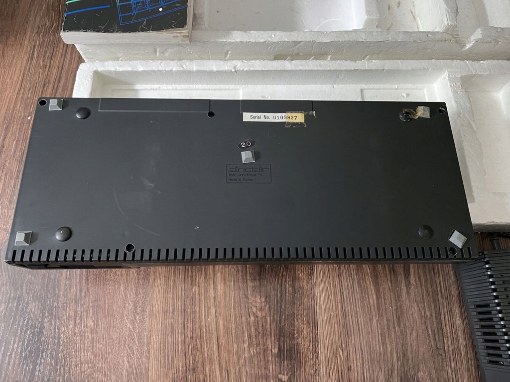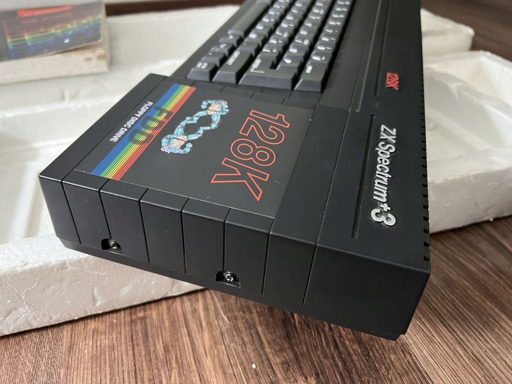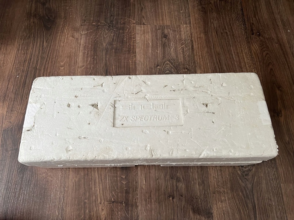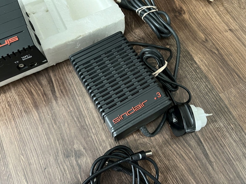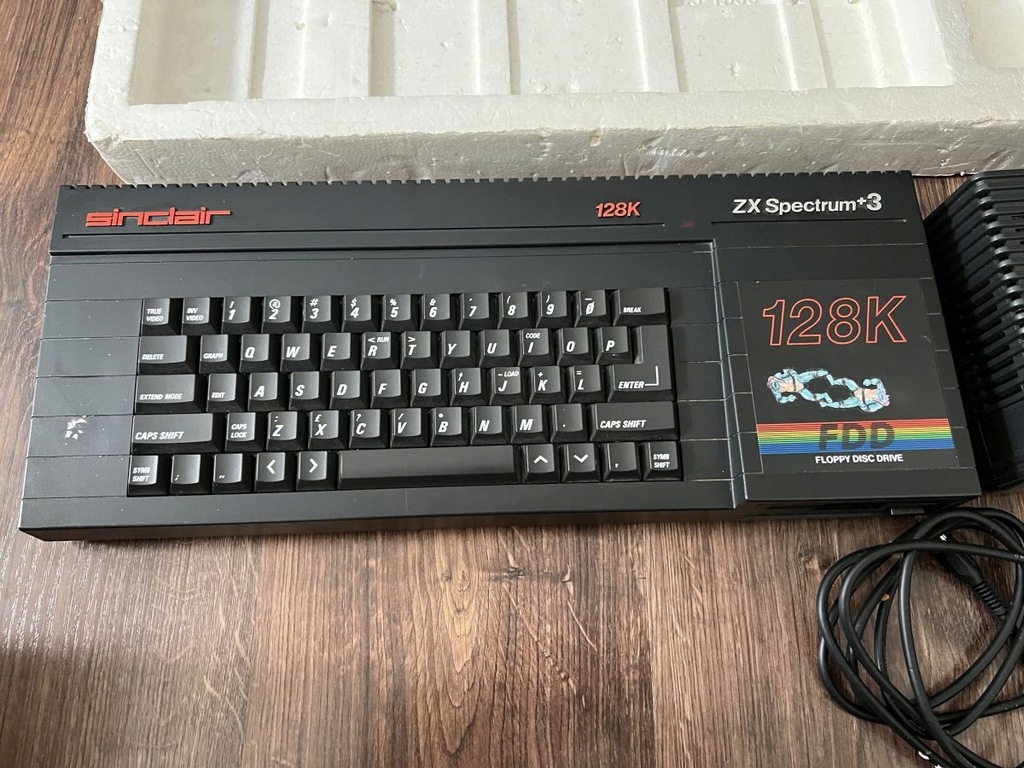 Komputer ZX spectrum +3, oryginalny sprawny zasilacz wraz z przejściówką z brytyjskiej, podniszczona instrukcja, przeciętne styropiany, kabel RF.