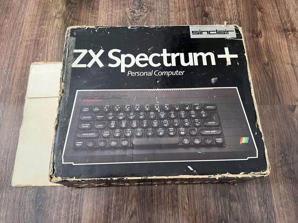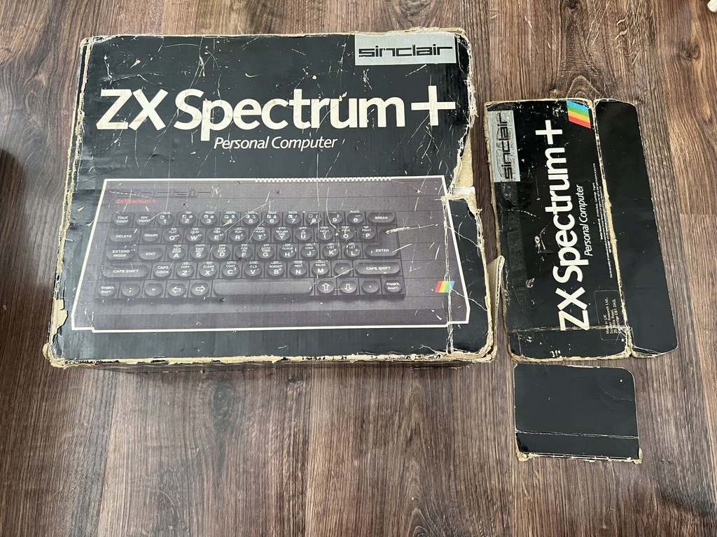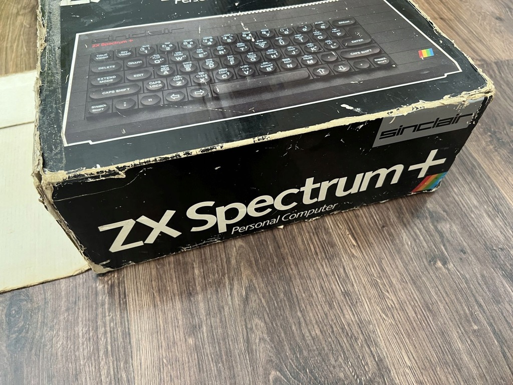 Komputer ZX spectrum+, oryginalny sprawny zasilacz (w środku luźny), zniszczone pudełko, z połamanymi styropianami. Stan obudowy widoczny na załączonych zdjęciach - dobrze zachowany.