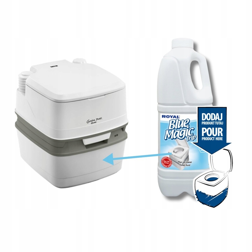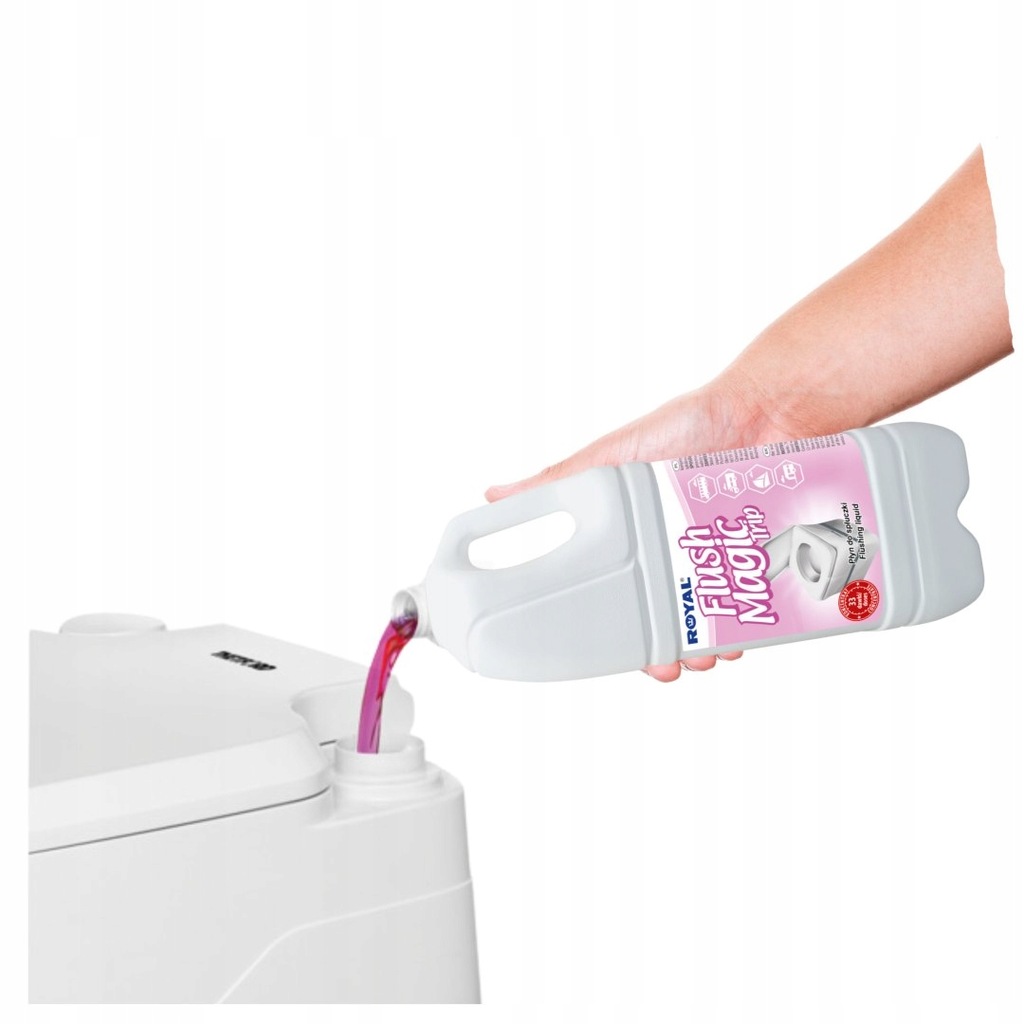 Koncentrat do dolnego zbiornika do toalet przenośnych, turystycznych, chemicznych w urządzeniach toaletowych w budownictwie i imprezach plenerowych, jak również w ubikacjach w autobusach, samolotach, kempingach, pociągach, przyczepach kempingowych, kamperach.